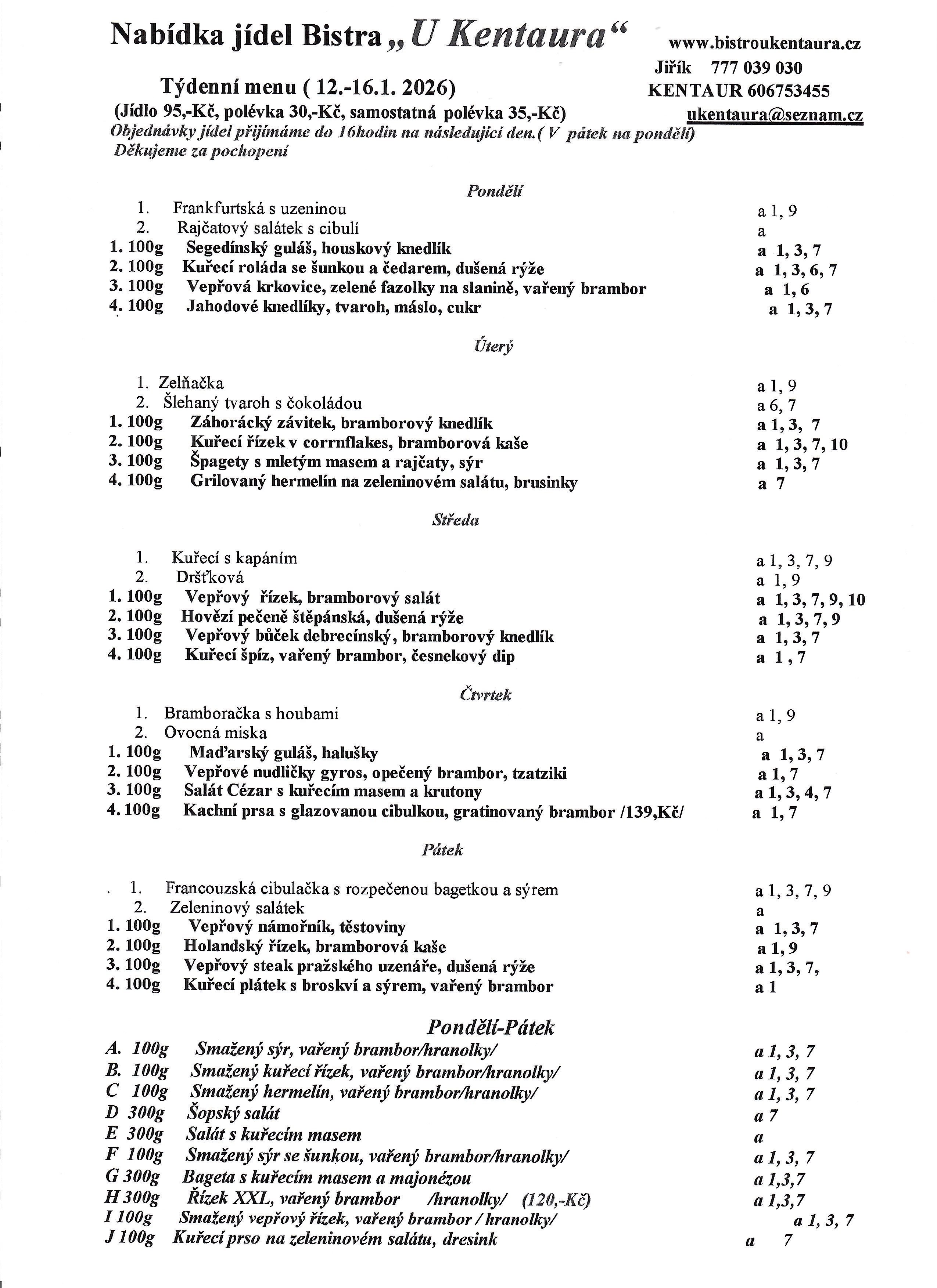 !! Objednávání a rušení obědů přijímáme pouze den předem do 16 hod., děkujeme za pochopení !!